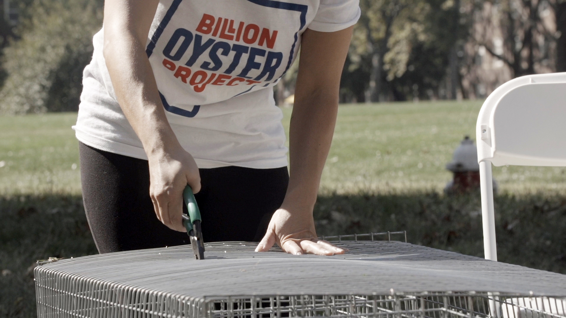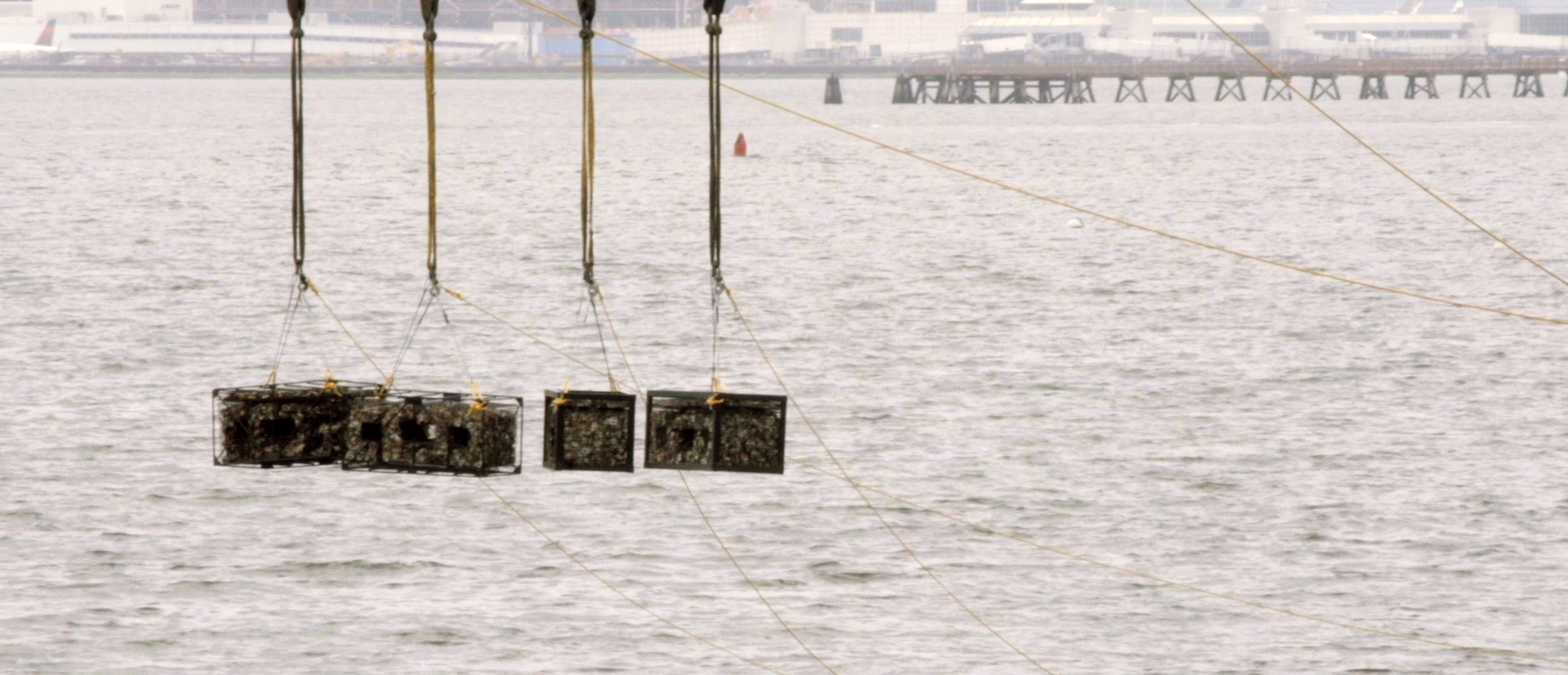 A crew of workers drops large containers into New York Harbor. A group of volunteers labor meticulously to construct cumbersome metal cages. A truck crosses the river to dump hundreds of thousands of discarded shells in a pile for recycling. These scenes — industrial and surprisingly evocative — confront viewers with the magnitude of the long-term ecological project of oyster restoration.